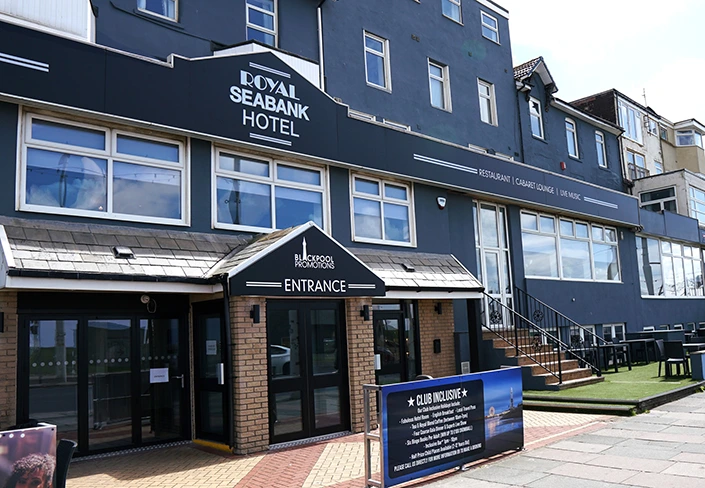 One of the most popular hotels in Blackpool, the Royal Seabank is ideally situated on the town’s Central Promenade on its iconic Golden Mile, overlooking the sea. Its 120 comfortable bedrooms provide a convenient base for your stay in the resort – all of its attractions including Blackpool Pleasure Beach, Blackpool Tower and its North, South and Central Piers are just a short walk from the hotel.There are plenty of places to sit and relax at the Royal Seabank, including a show bar which is open to residents and non-residents with nightly cabaret entertainment, a music bistro and a restaurant.